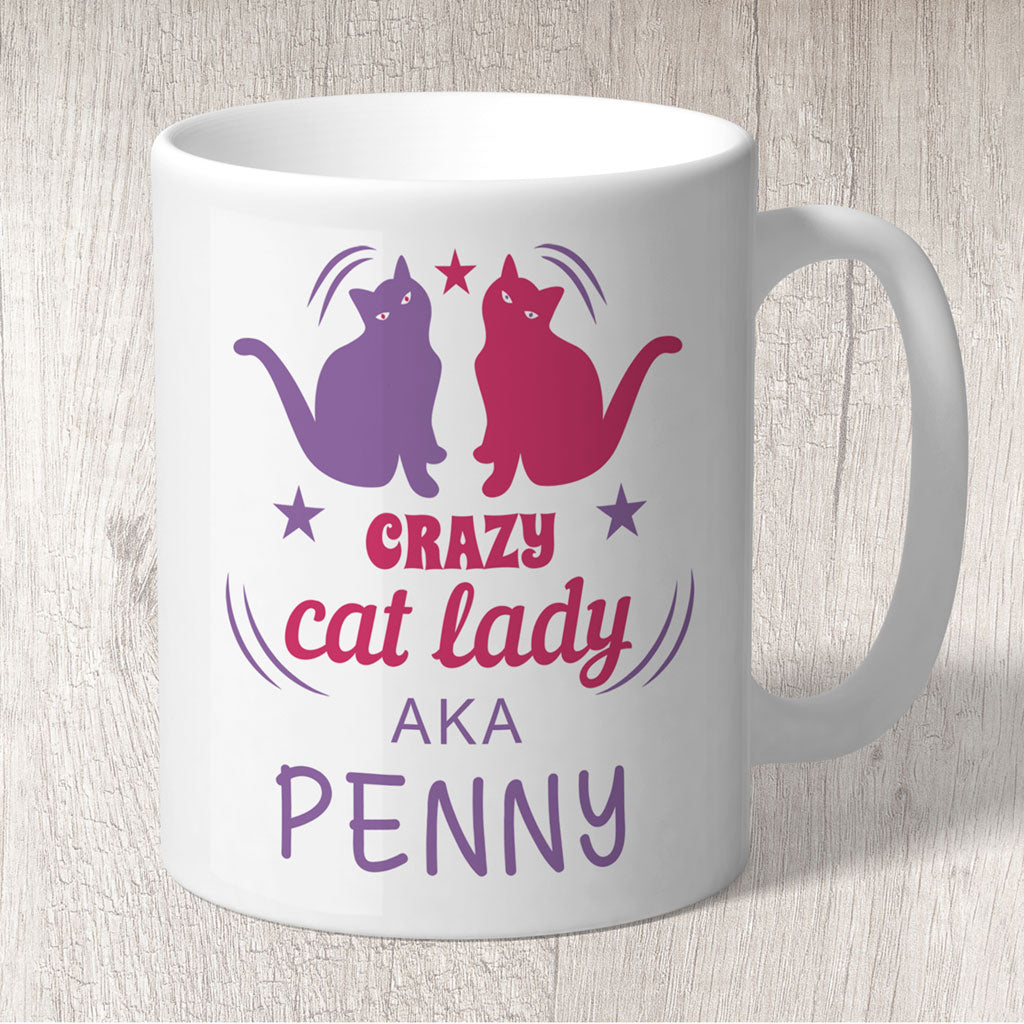 Customised with the cat ladies name. Simply add the name you'd like on your mug in the option box.