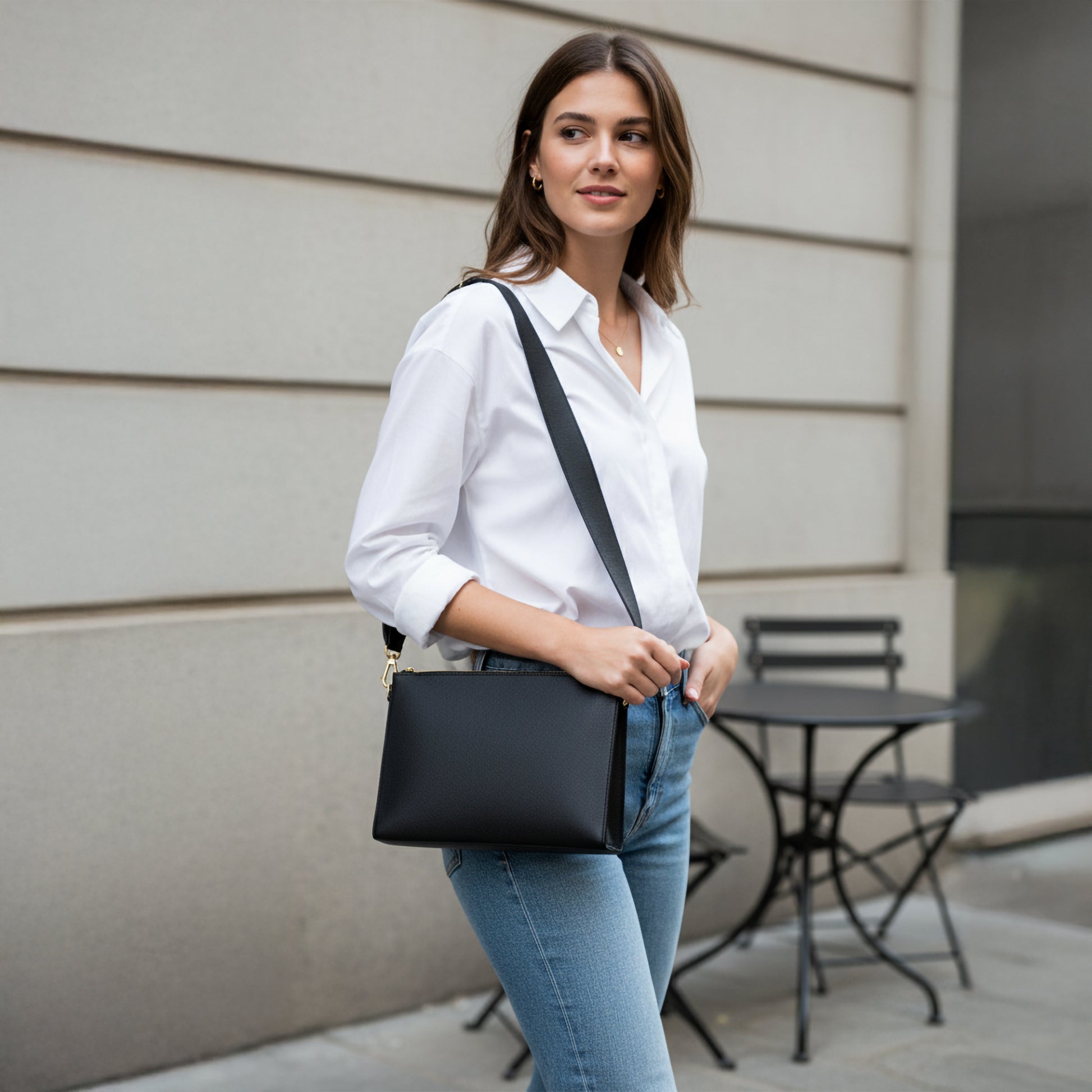 - Detachable, adjustable shoulder strap (107cm) → wear it cross-body, shorten for shoulder wear, or detach for a chic clutch.